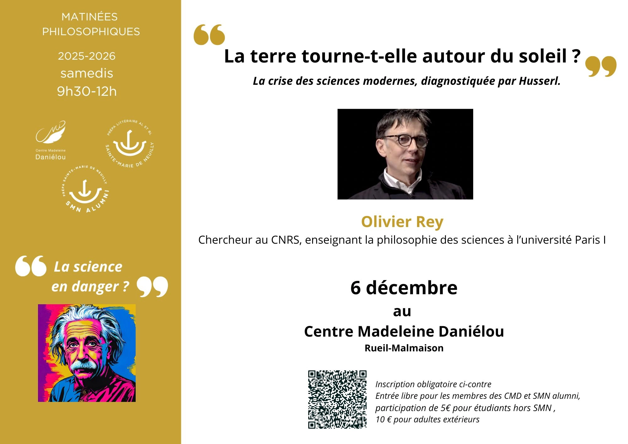 Olivier Rey, Chercheur au CNRS, enseignant la philosophie des sciences à l’université Paris I traitera de la crise des sciences modernes, évoquée par Husserl